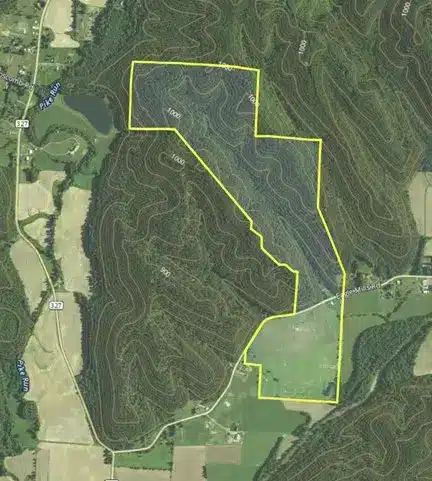 Mature timber from ridge to ridge with ag on site along a creek bottom. This is near the Ross County line as well as Tar Hollow State Forest and other public hunting opportunities. Because it is open timber, deer will bed on ridges and benches; strategic access and hunting the topography without ATV’s to hunt is recommended.